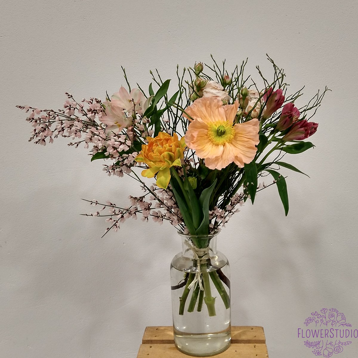 Bukiet niespodzianka wykonany przez naszą cudowną florystkę Sylwię z kwiatów dostępnych w danym dniu w kwiaciarni. Bukiet jest mniejszą propozycją bukietu ” Bukiet tygodnia Sylwia”